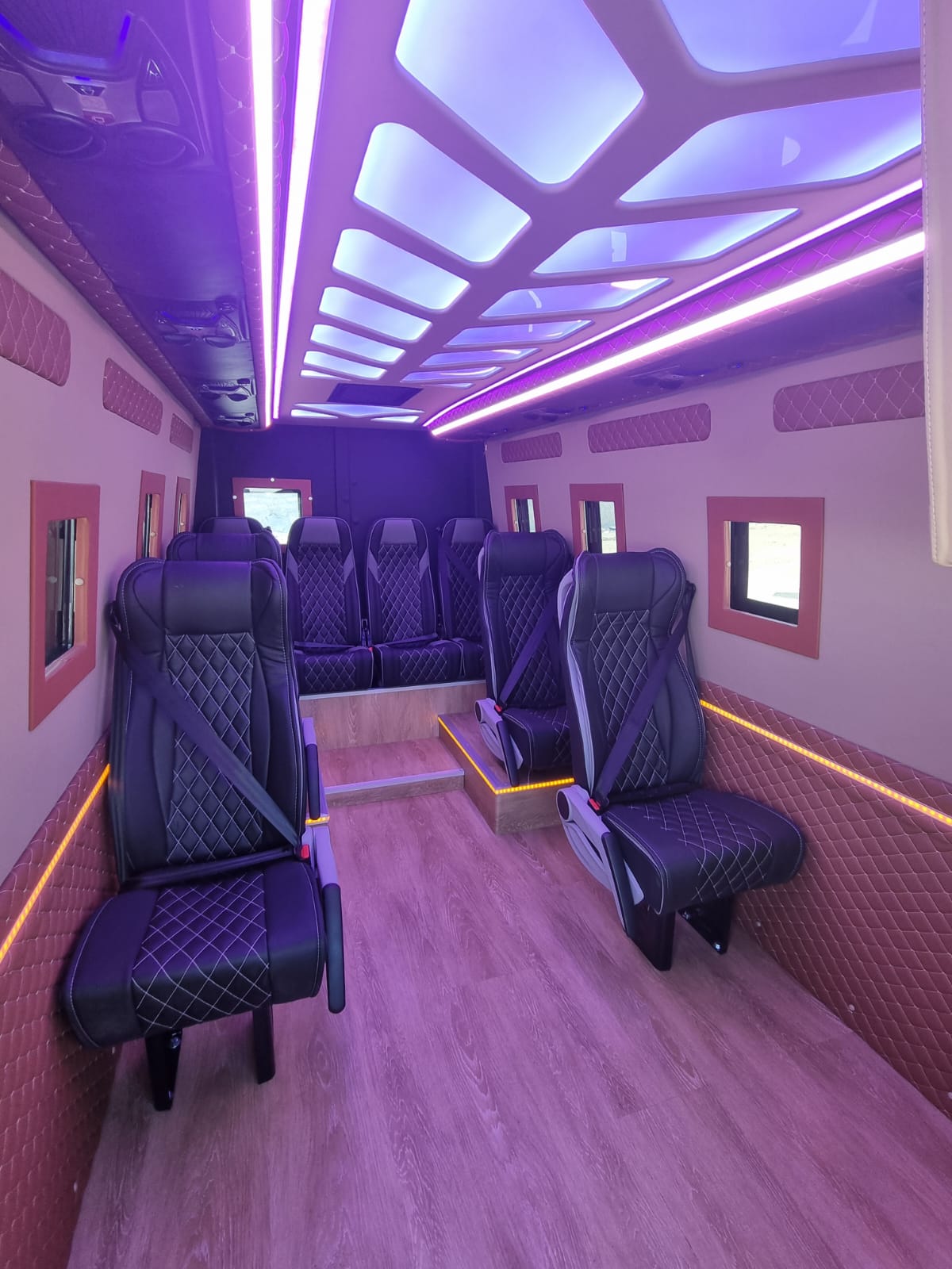 על אף המיגון המלא, הרכבים שלנו שומרים על חוויית נסיעה נוחה ונעימה – מושבים מרופדים, מיזוג אוויר, מערכת שמע, חלונות פנורמיים עם הגנה מיוחדת ותאורה פנימית נעימה.